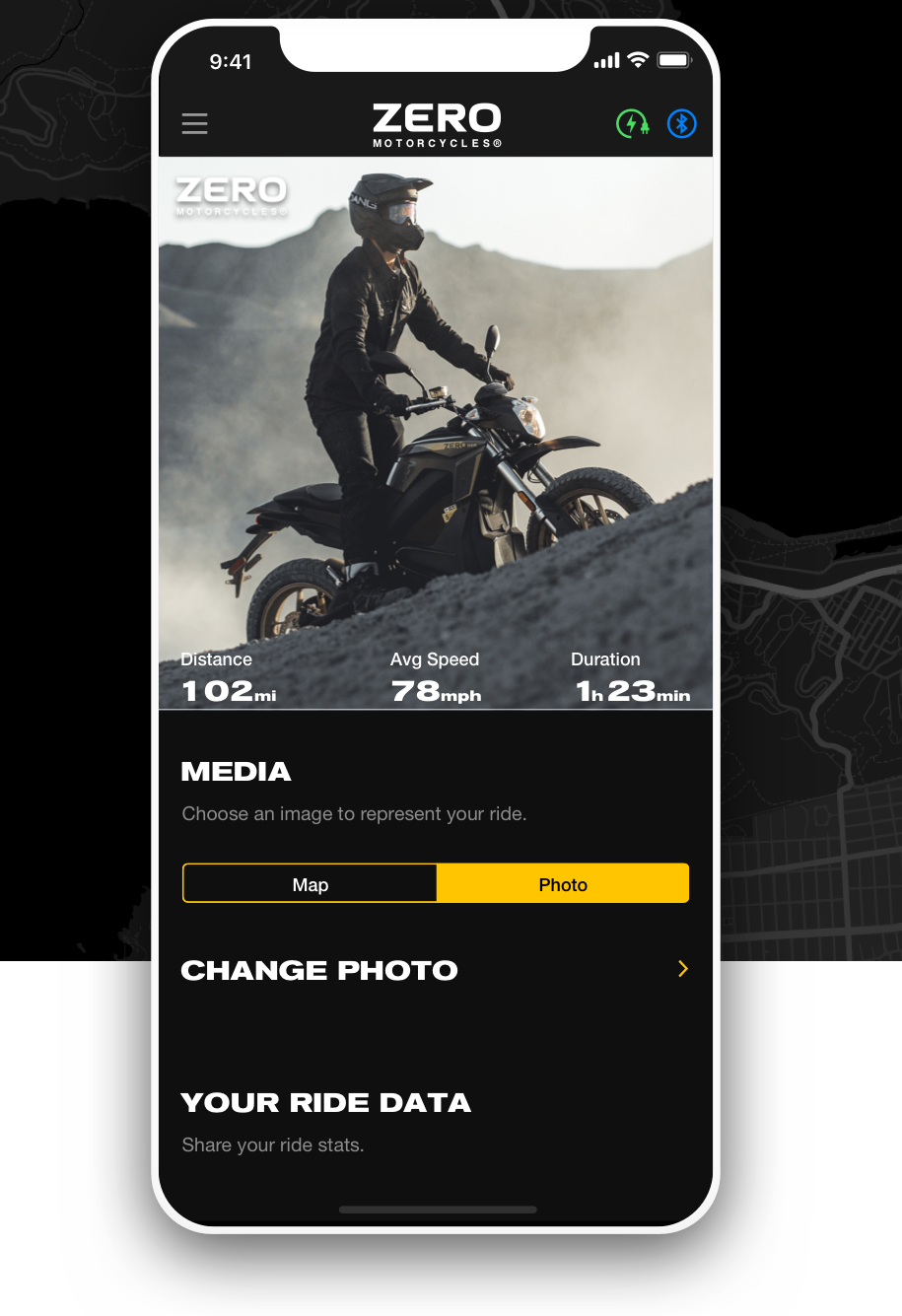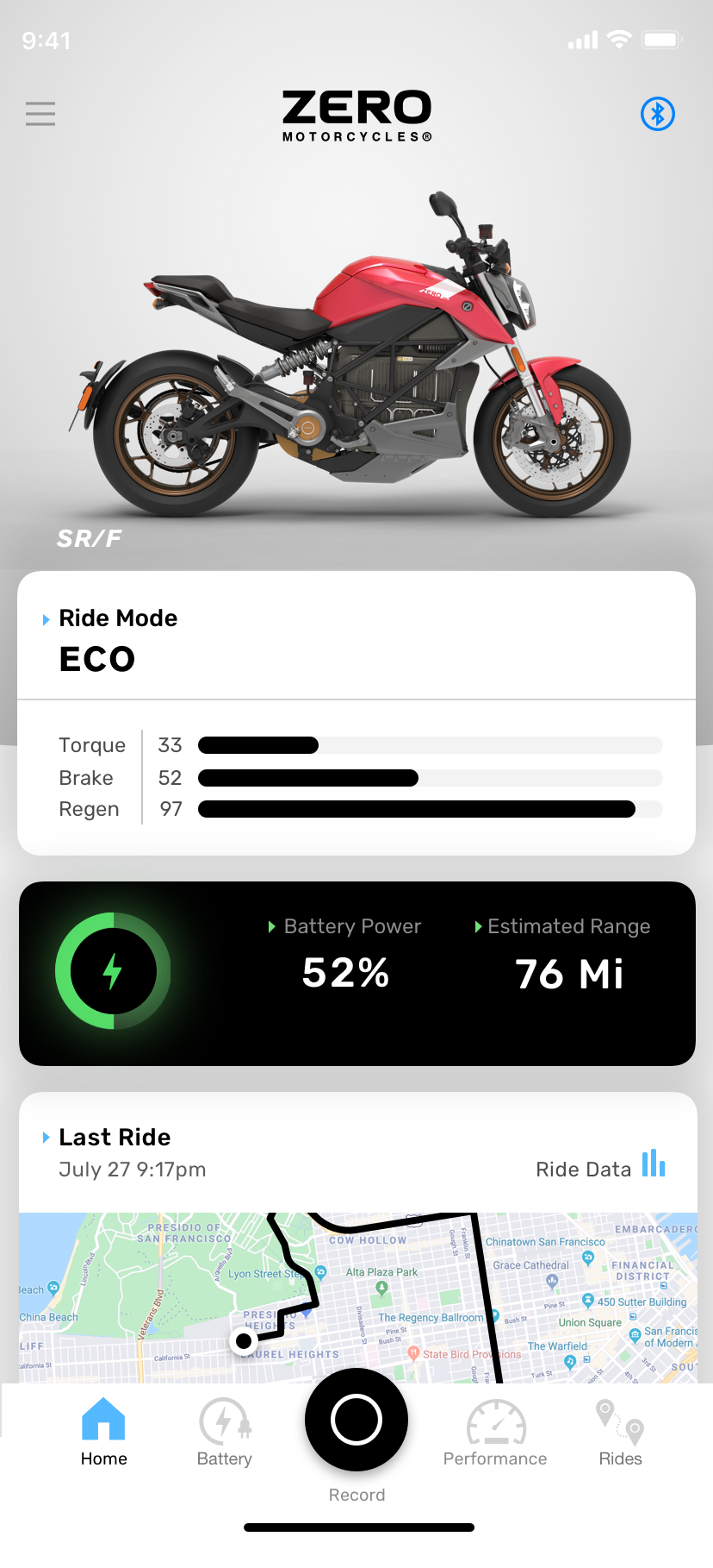 I was the Design Lead for the development of Zero Motorcycle's "Next Gen" app for it's full lineup of all-electric motorcycles. The app connects to the bikes dashboard and firmware to control performance, battery power, and record, replay, and share ride data, creating the industries first "Smart" Motorcycle.